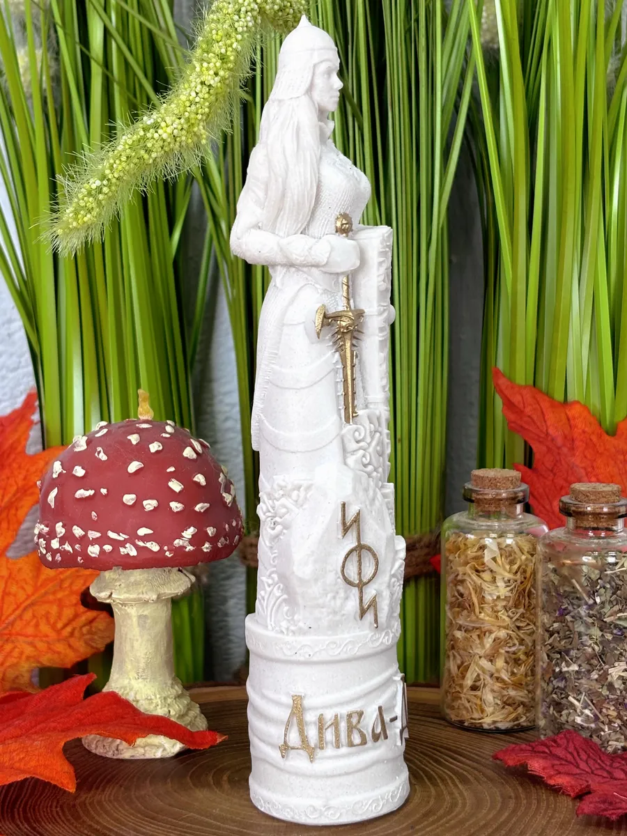 Коллекционная алтарная статуэтка Богиня Дива Додола — это отличный подарок, который станет прекрасным украшением интерьера и мощным оберегом. Изготовленная вручную из литьевого мрамора, статуэтка является символом защиты и благополучия, что делает её идеальным подарком для близких.