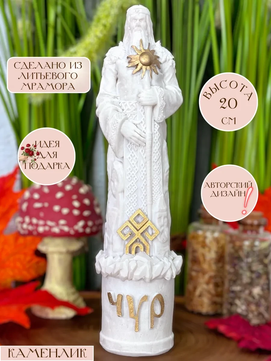 Каждая статуэтка изготовлена вручную из литьевого мрамора, что гарантирует ее долговечность и неповторимость. Мастера тщательно прорабатывают каждую деталь, чтобы передать всю силу и мощь божества. Благодаря этому, статуэтка Славянского Бога Чура станет настоящим произведением искусства, украшающим ваш дом и приносящим в него атмосферу древней мудрости и силы.