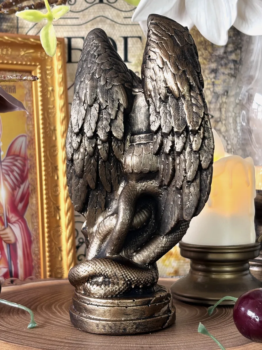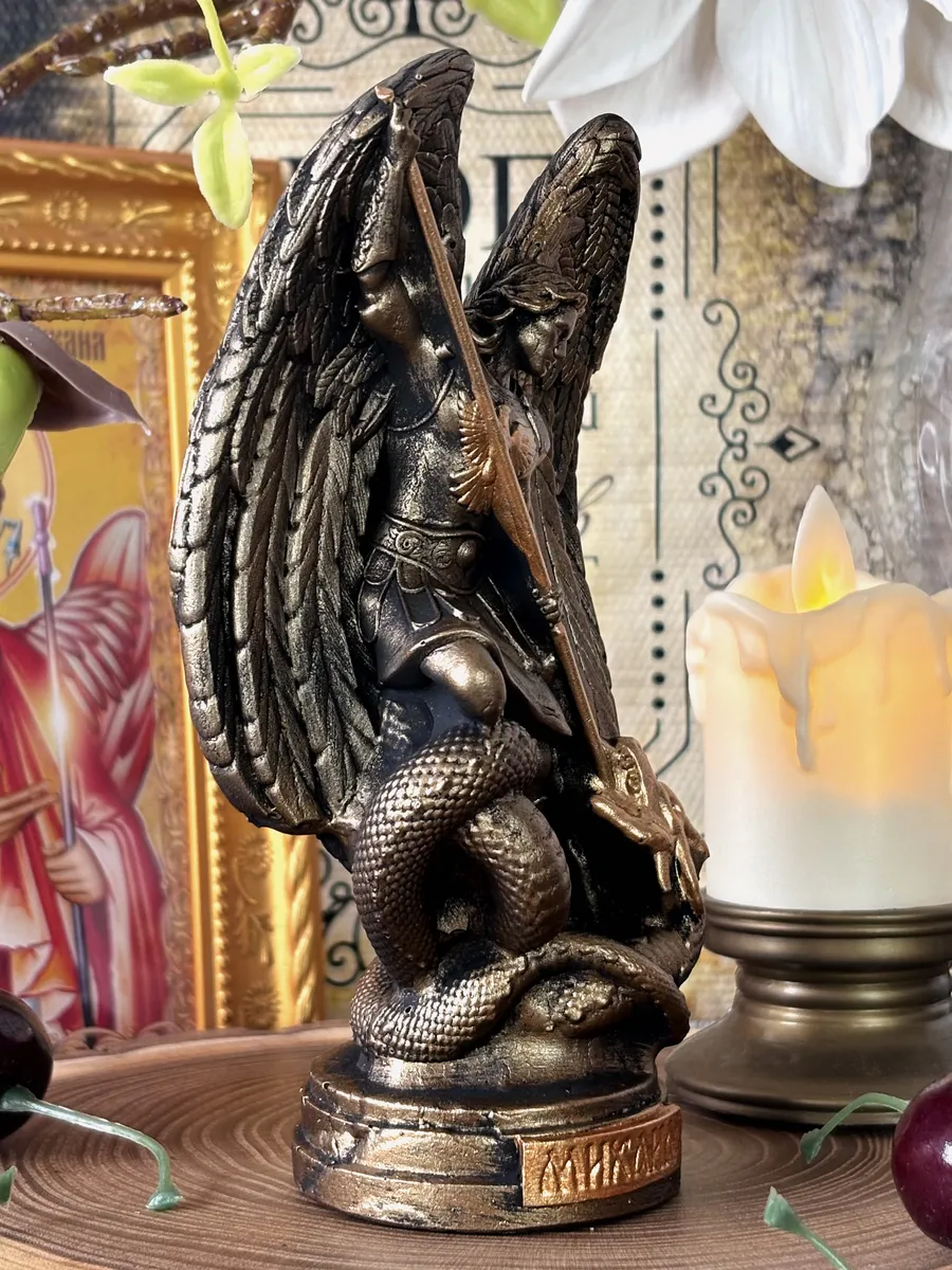 Ручная работа мастеров позволяет сохранить уникальность каждой детали, что подчеркивает индивидуальность и глубину образа. Изделие отражает традиции православия и служит источником вдохновения для тех, кто ищет духовные ориентиры. Такая статуэтка станет достойным украшением интерьера и выразительным элементом, подчеркивающим уважение к святому Архангелу Михаилу.